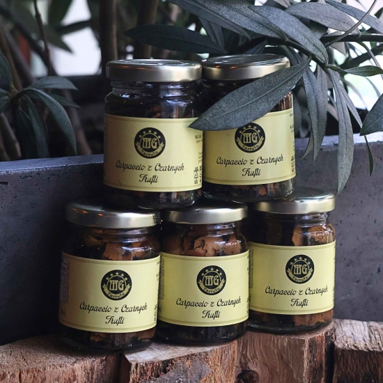 Carpaccio z czarnych trufli jest produktem premium, wykonanym ze starannie wyselekcjonowanych trufli.