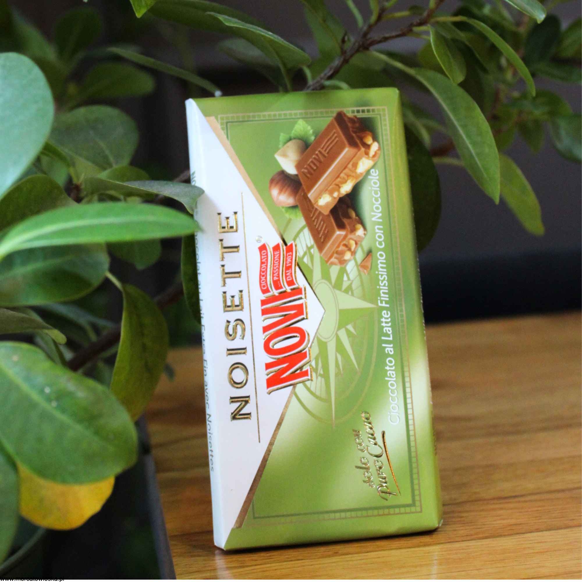 Najszlachetniejsza mleczna czekolada Novi doskonale komponuje się z najszlachetniejszymi siekanymi orzechami laskowymi z wzgórz, które stanowią 16% receptury. Tak powstaje wykwintna czekolada Noisette w fabryce w Novi Ligure w Piemoncie.